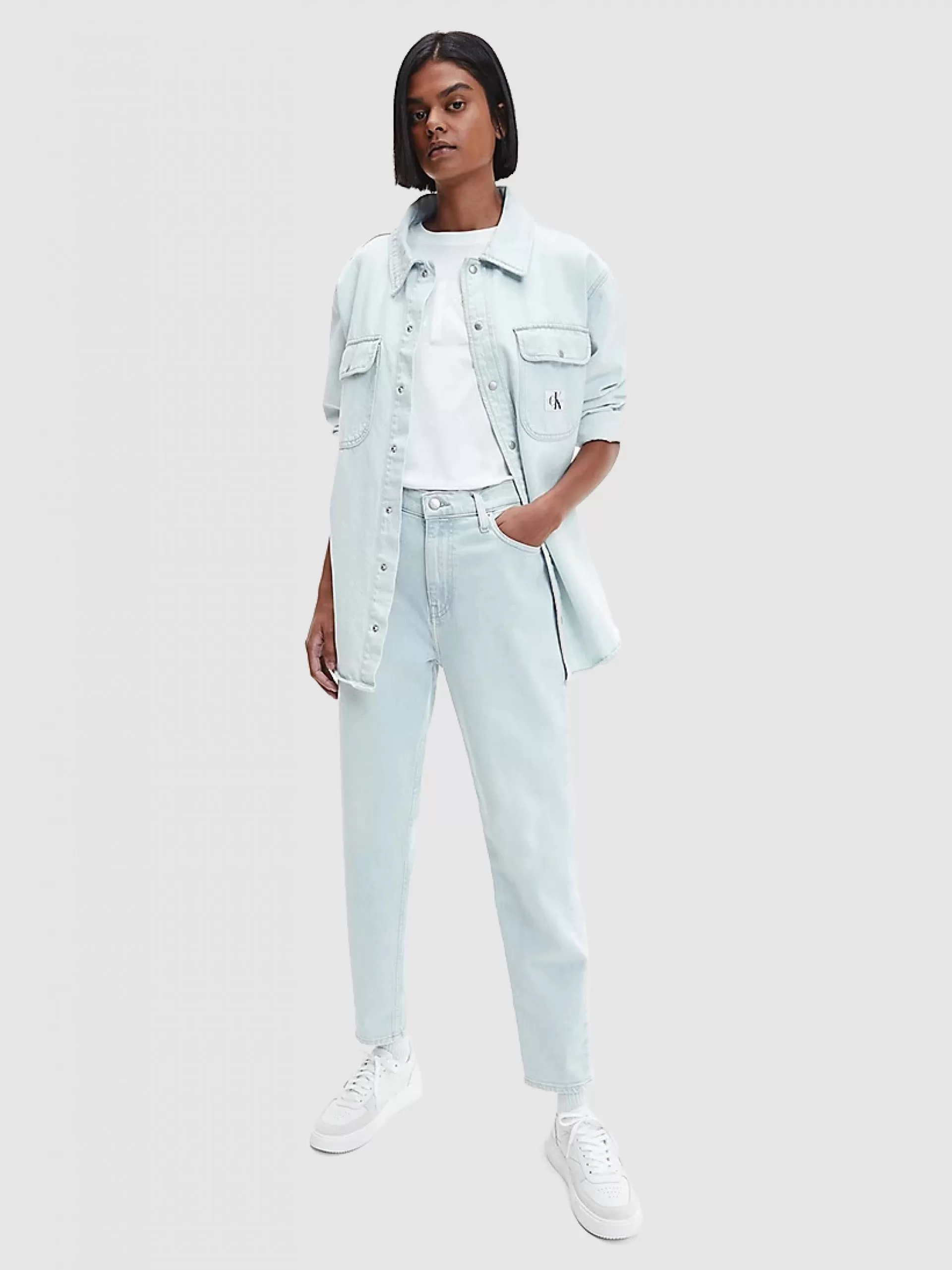 A nossa silhueta de inspiração vintage dos anos 90 com cintura subida e pernas afuniladas. Feito com 20% de fibras de algodão reciclado.
