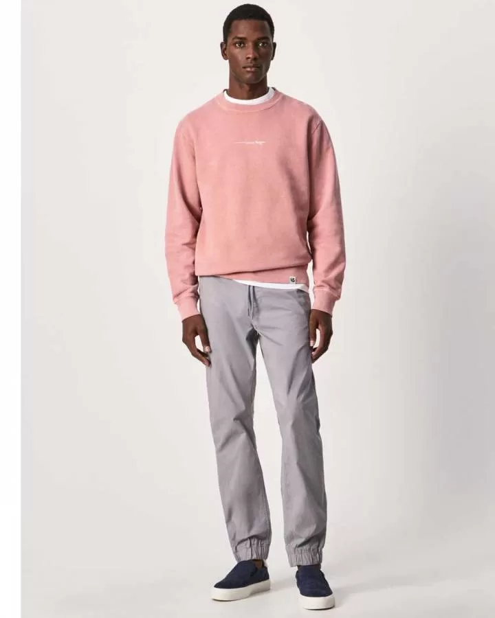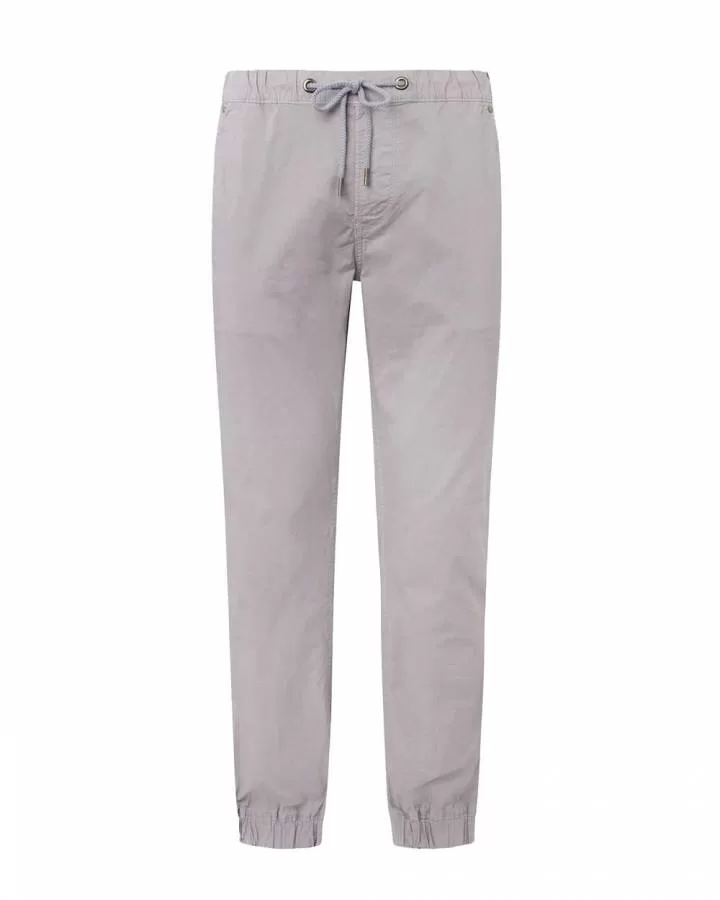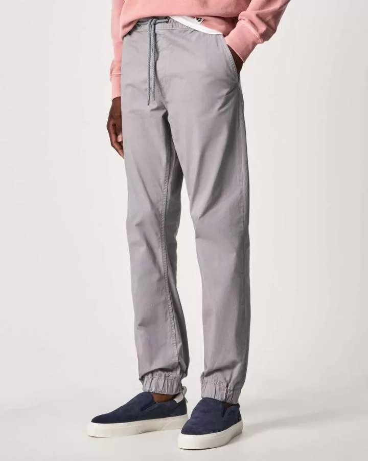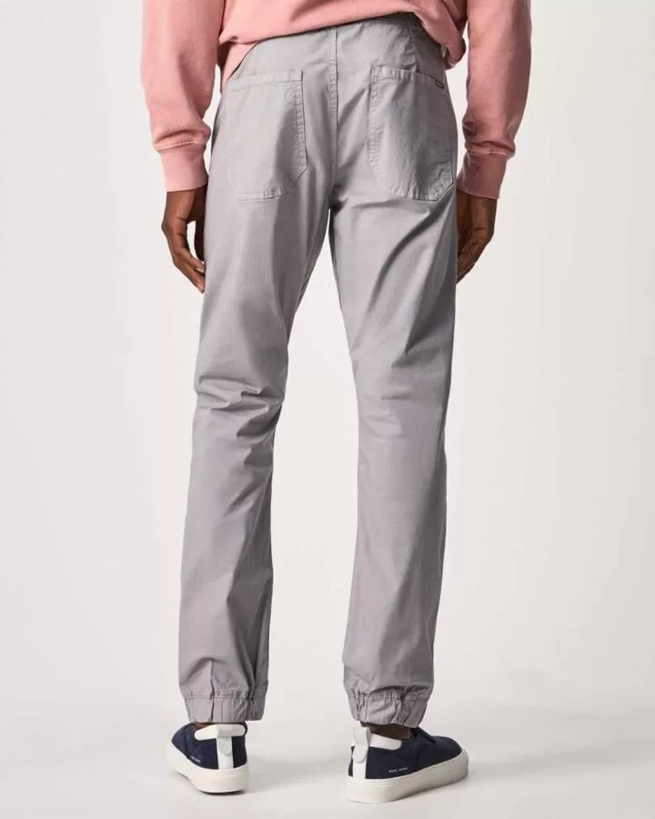 Descrição: – Calça tipo jogger com punhos elásticos no tornozelo – Ajuste do corredor – Cintura regular – Perna afunilada – Cintura com acabamento em cordão – Bolsos laterais e traseiros – Tecido sustentável
