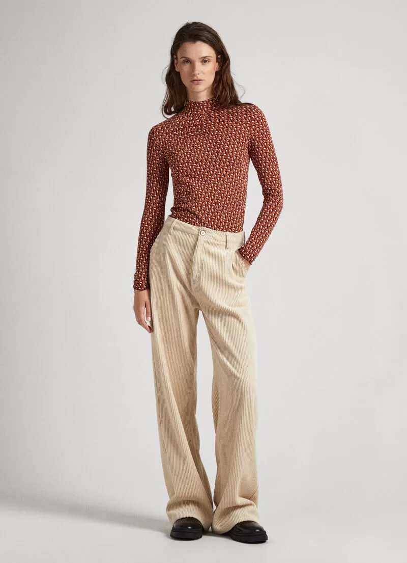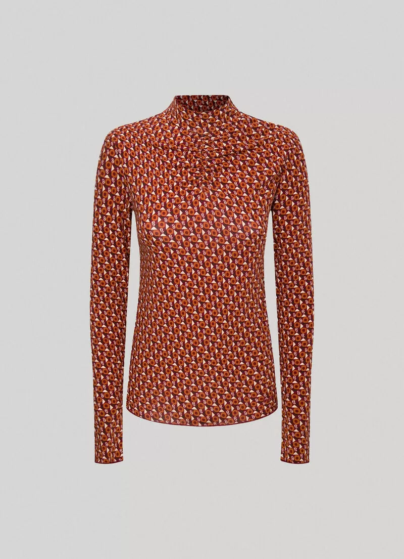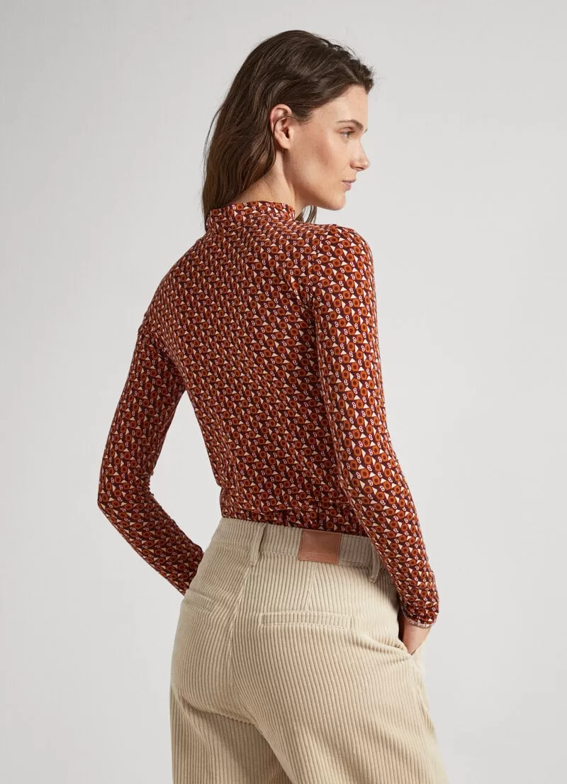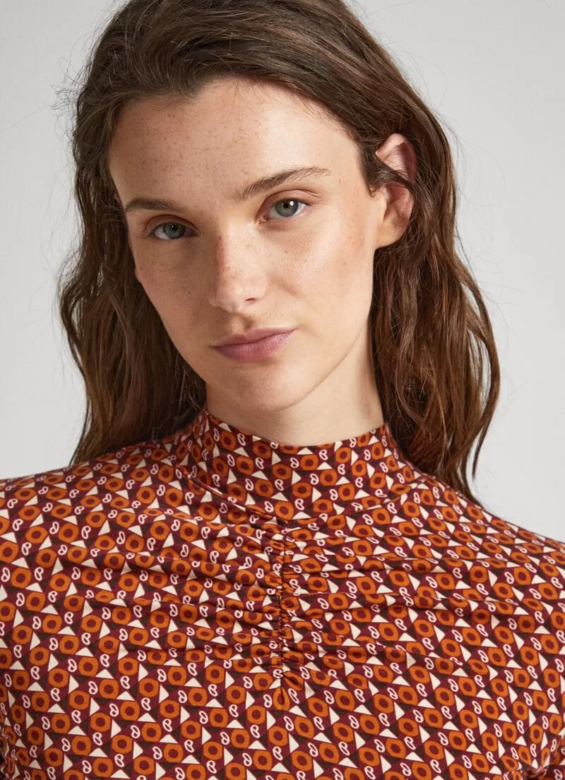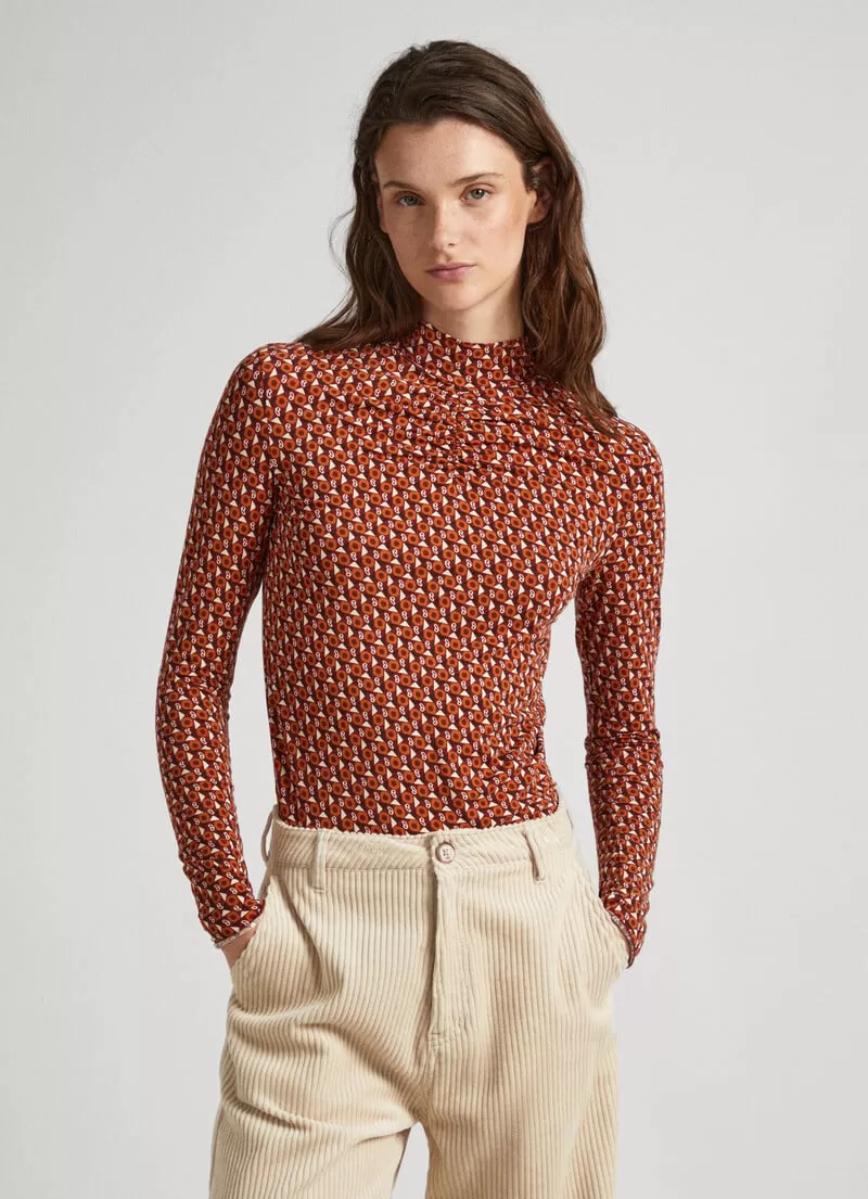 Camisoa de algodão elástico. .Manga comprida. Estampado geométrico all over. Detalhe franzido no peito. Logo PEPEJEANS estampado na bainha. Acabamento baby overlock nos punhos e bainha. COMPOSIÇÃO: 96% Algodão, 4% Spandex.