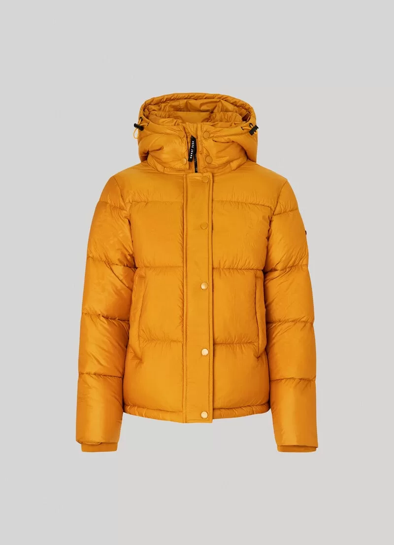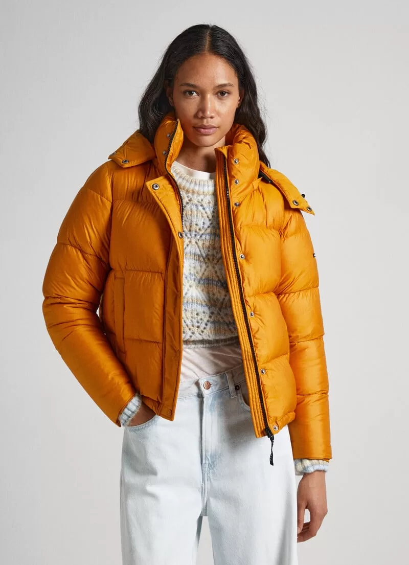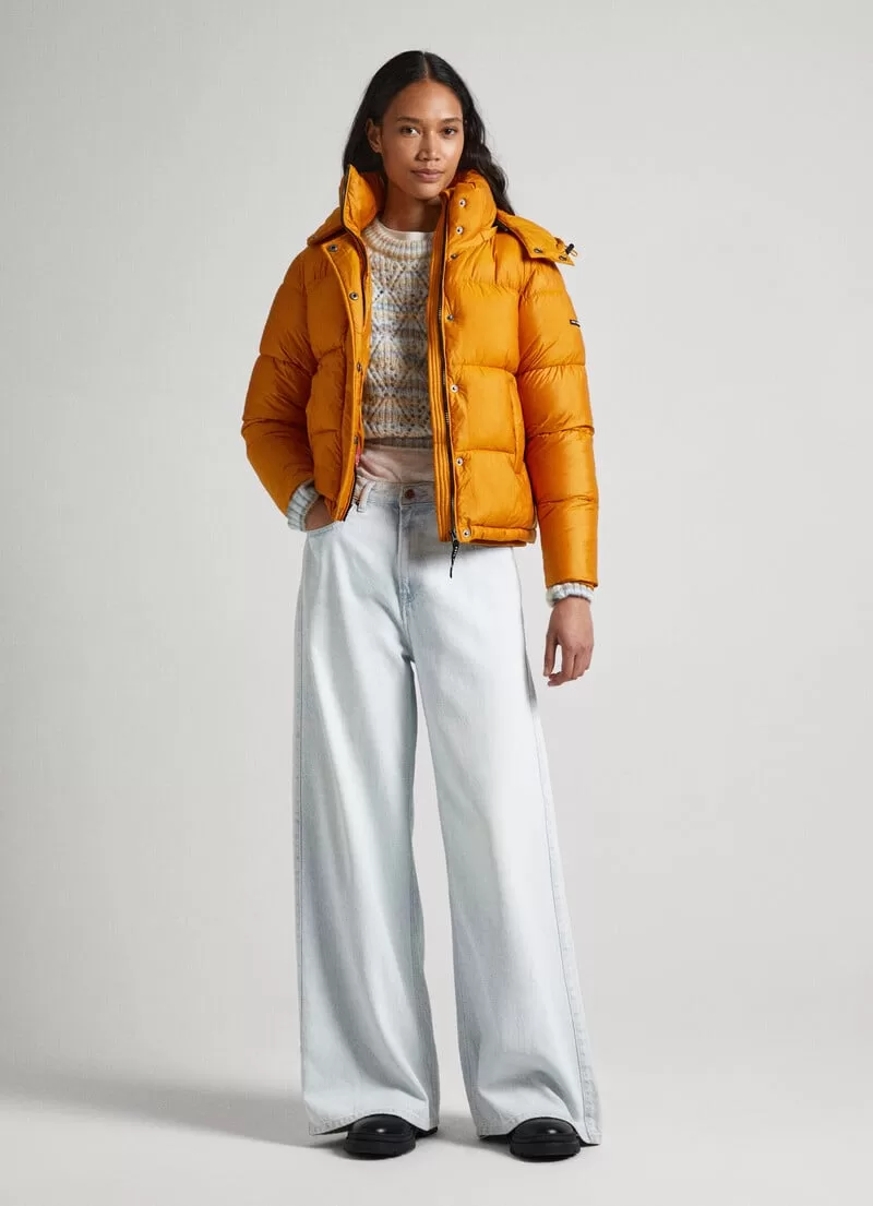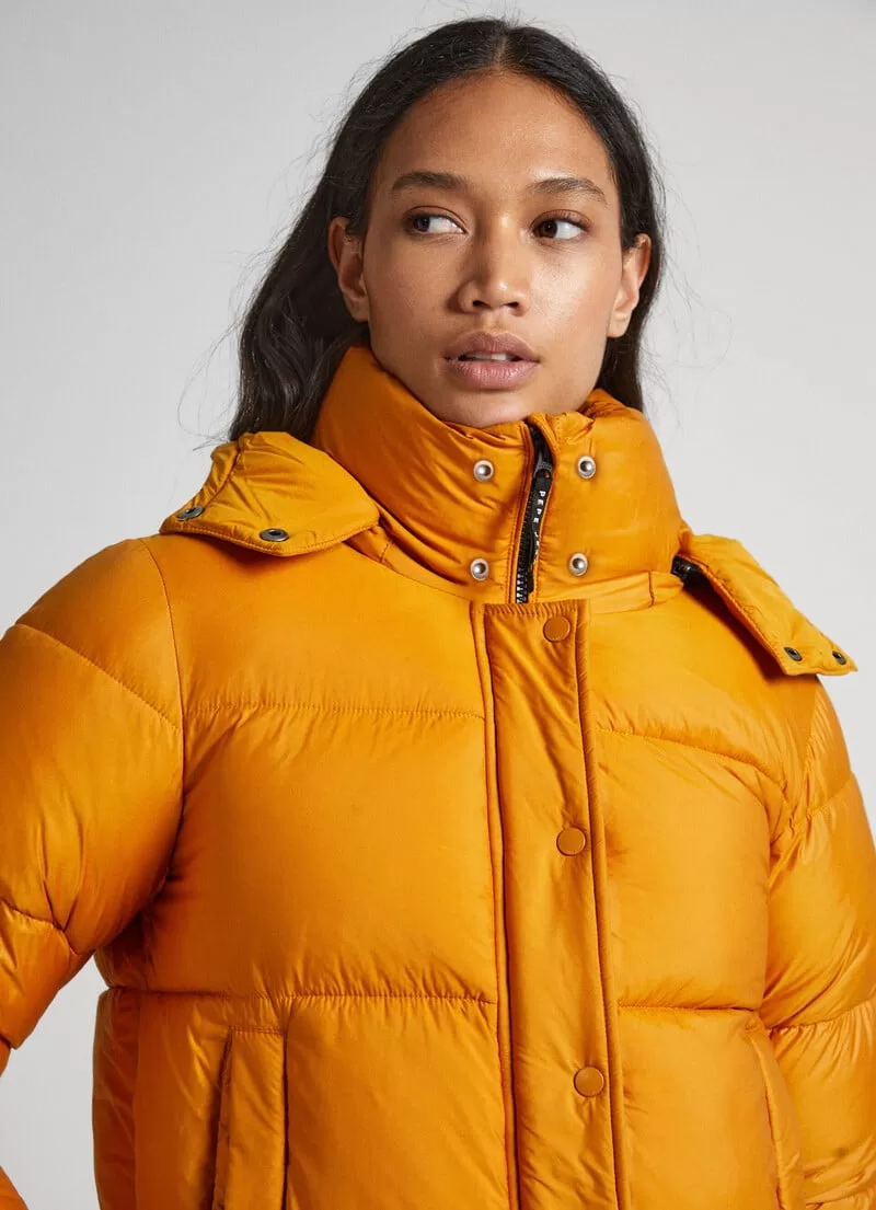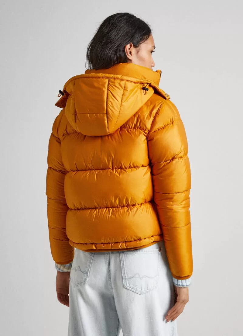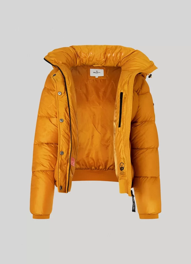 Casaco de tecido combinado. Tecido repelente de água. Capuz ajustável com cordão. Fecho de correr frontal. Carcela com botões de pressão. Bolsos laterais embutidos. Patch de borracha com logo PEPEJEANS na manga esquerda. Forro interno com logo estampado all over. COMPOSIÇÃO: 55% Poliéster, 45% Nylon.
