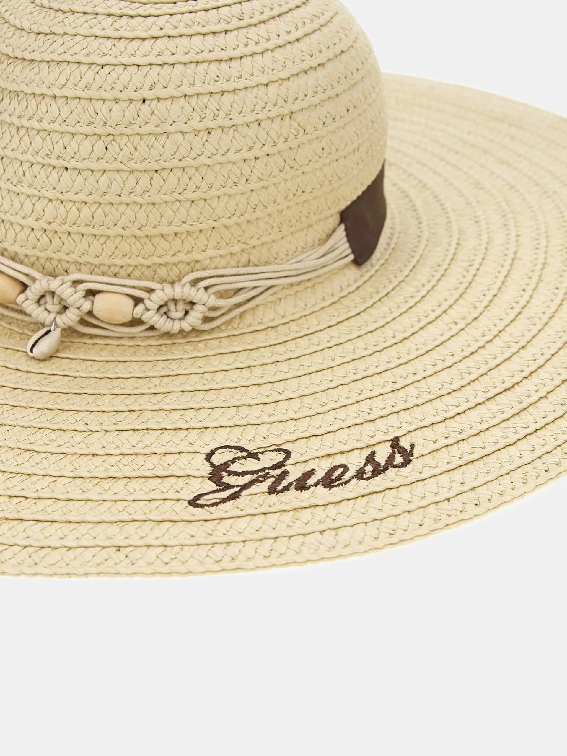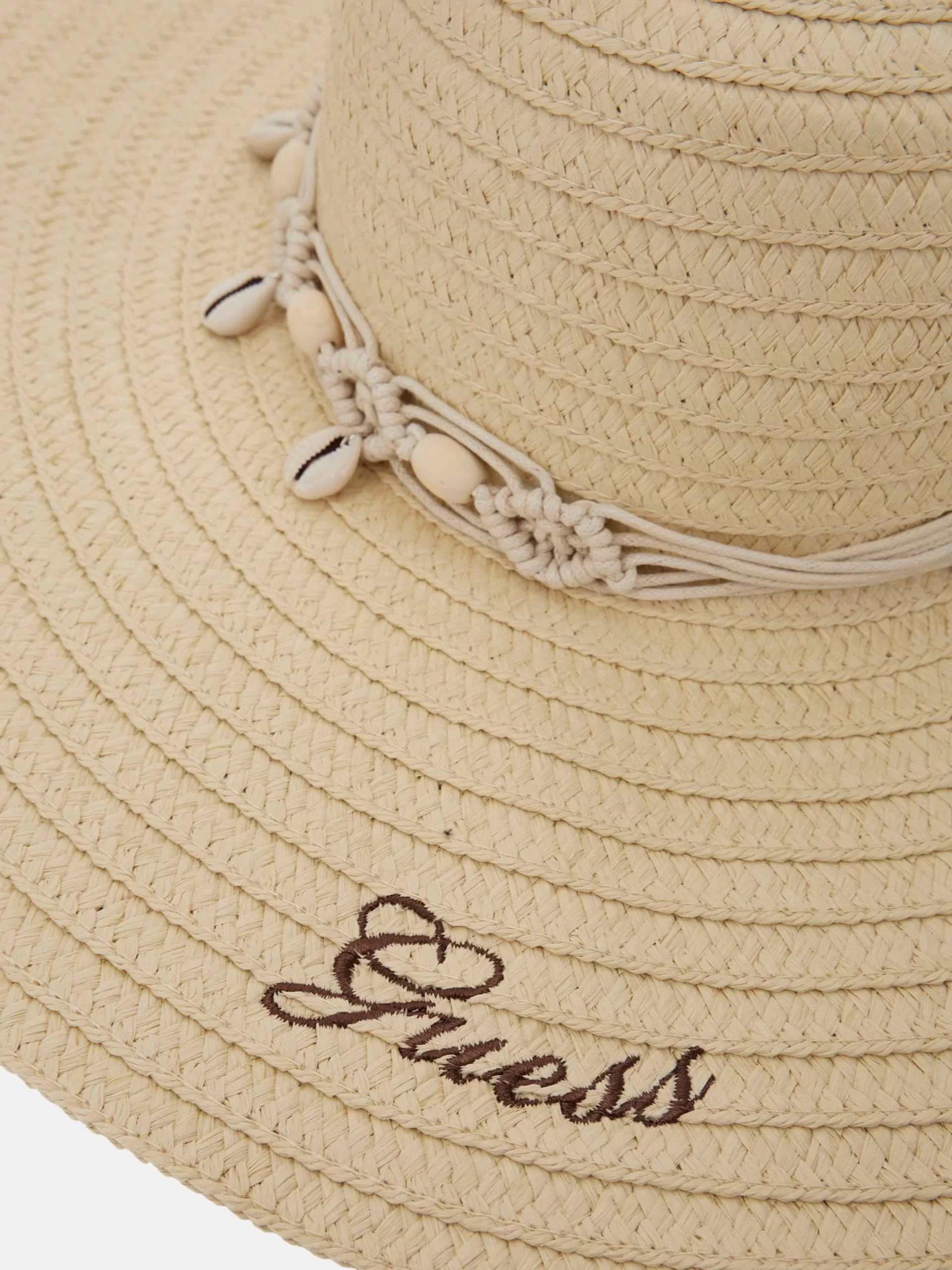 Detalhe entrançado com missangas e conchas.