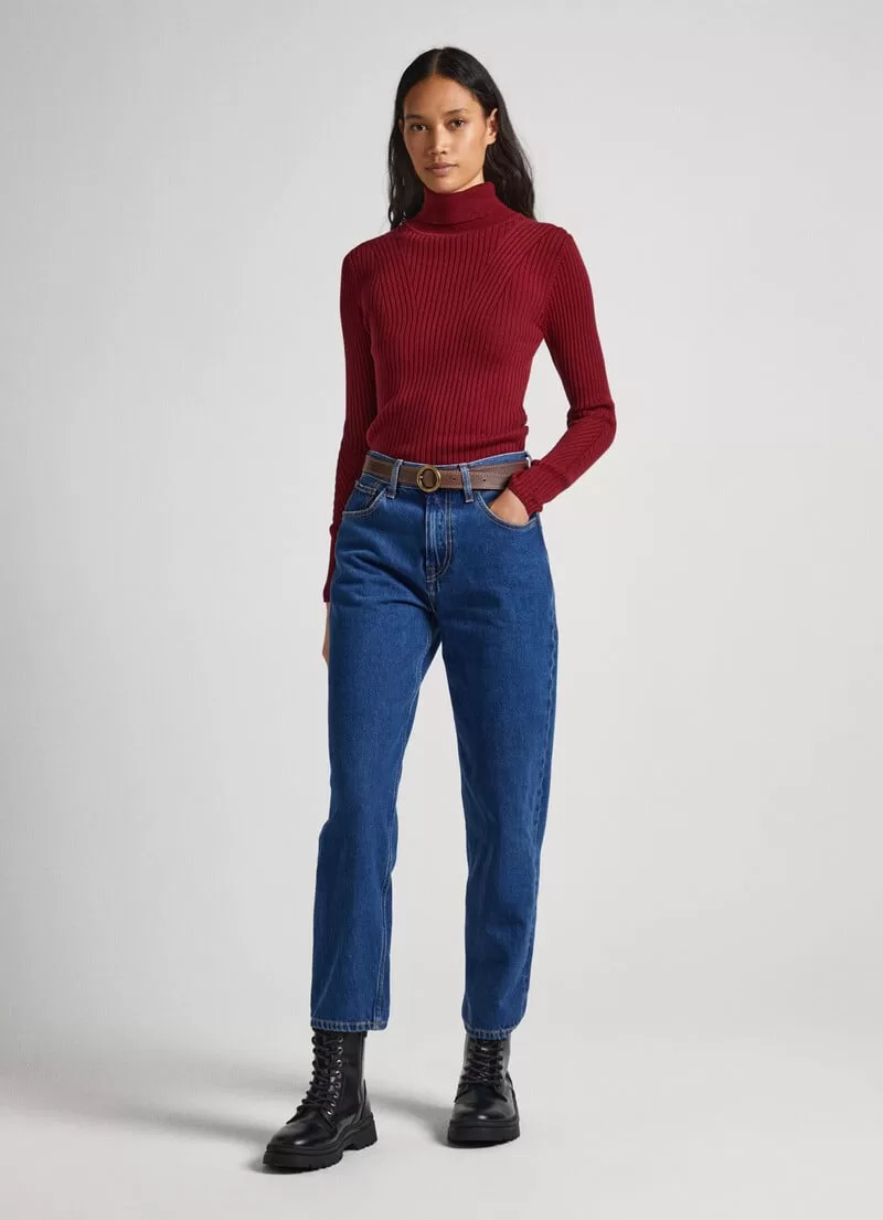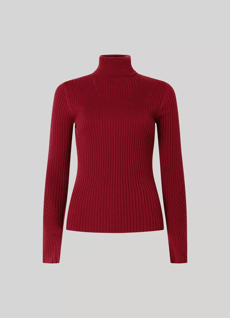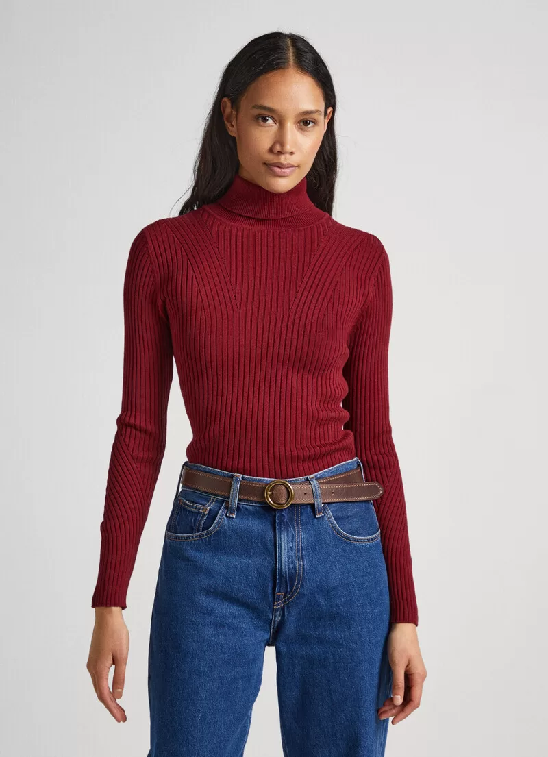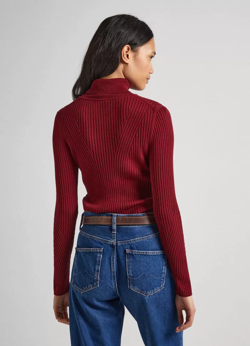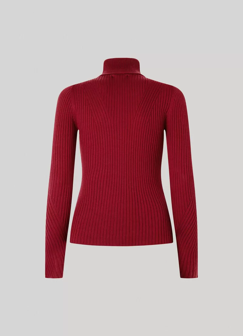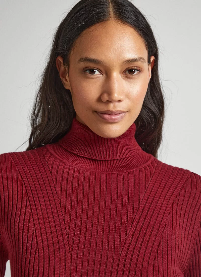 Malha em tecido canelado. Slim fit. Gola alta. Manga comprida. Pormenores de malha aberta. Placa de metal com logo PEPEJEANS na bainha. COMPOSIÇÃO: 60% Algodão, 40% Viscose.