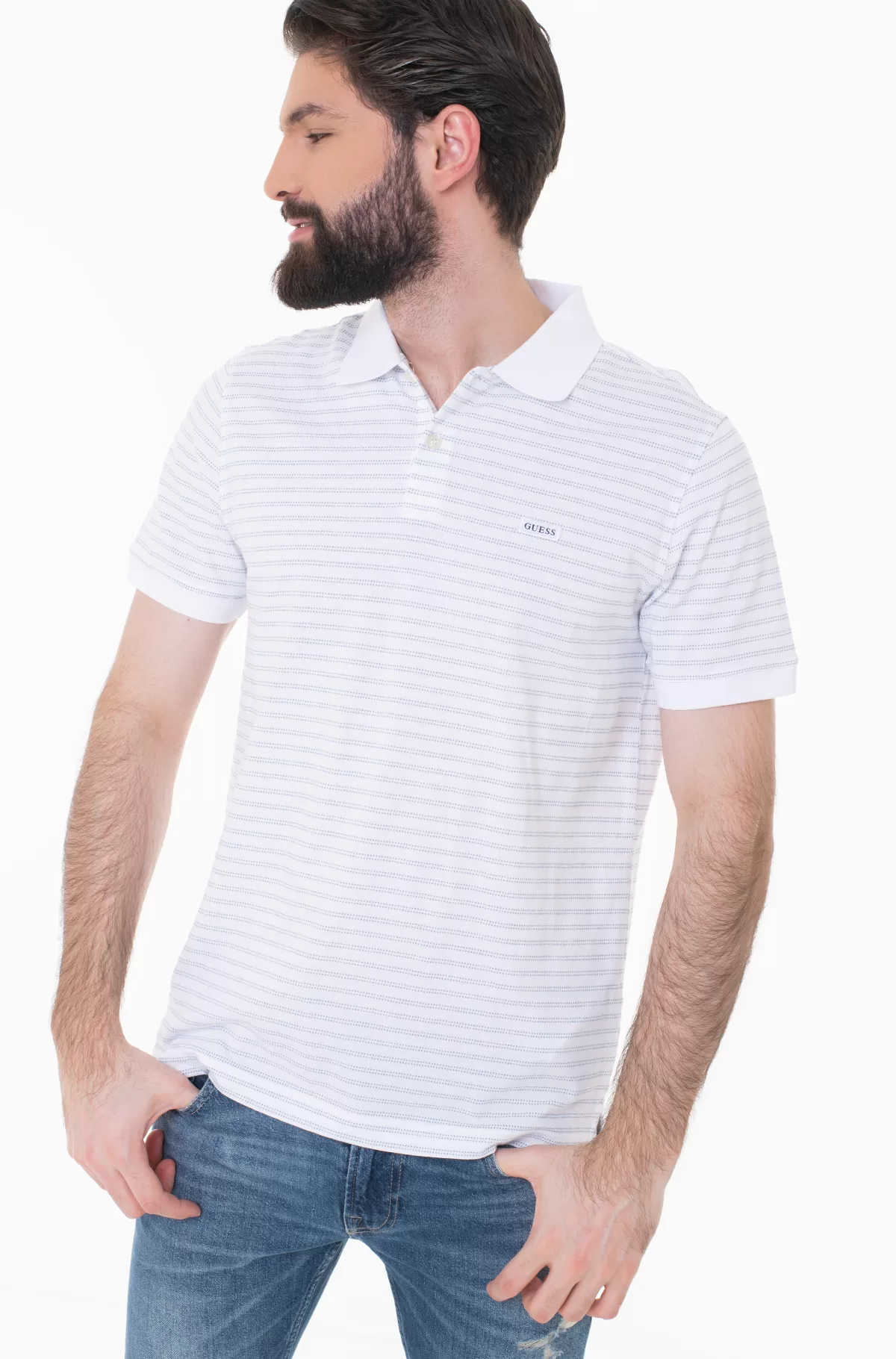 Descrição Código# M3GP07KBQ50 Polo em mistura de algodão. Gola de polo. Manga curta. Corte regular. Aperta com botão. TIPO DE TECIDO: Piquê. ADORNOS: Riscas na horinzontal A imagem mostra o tamanho M. Comprimento total: 71,1 cm / 28 inch. Comprimento da manga: 21,6 cm / 8.5 inch. Fiel ao tamanho. -REVESTIMENTO (tecido principal): 100% Algodão. ETIQUETA DE LAVAGEM: Lavar no máx. a 30 °C. –