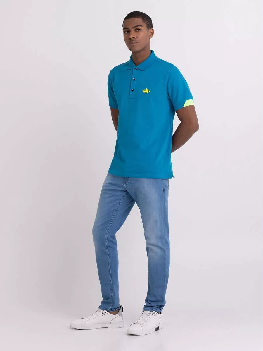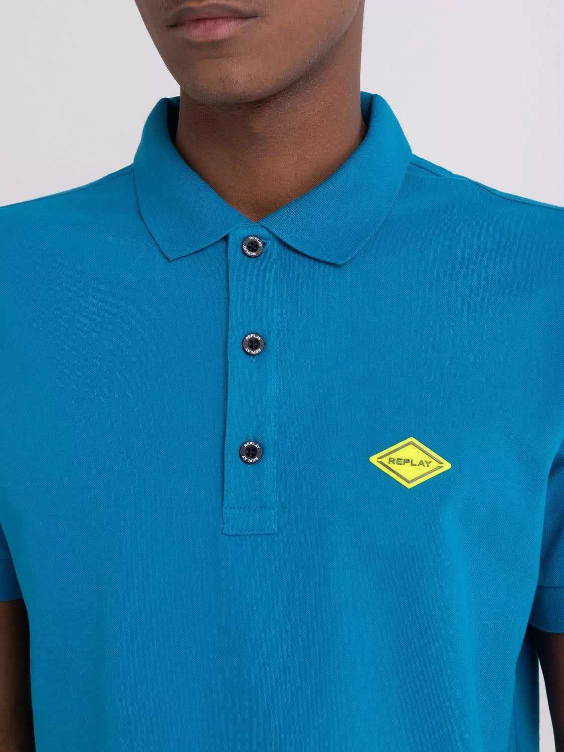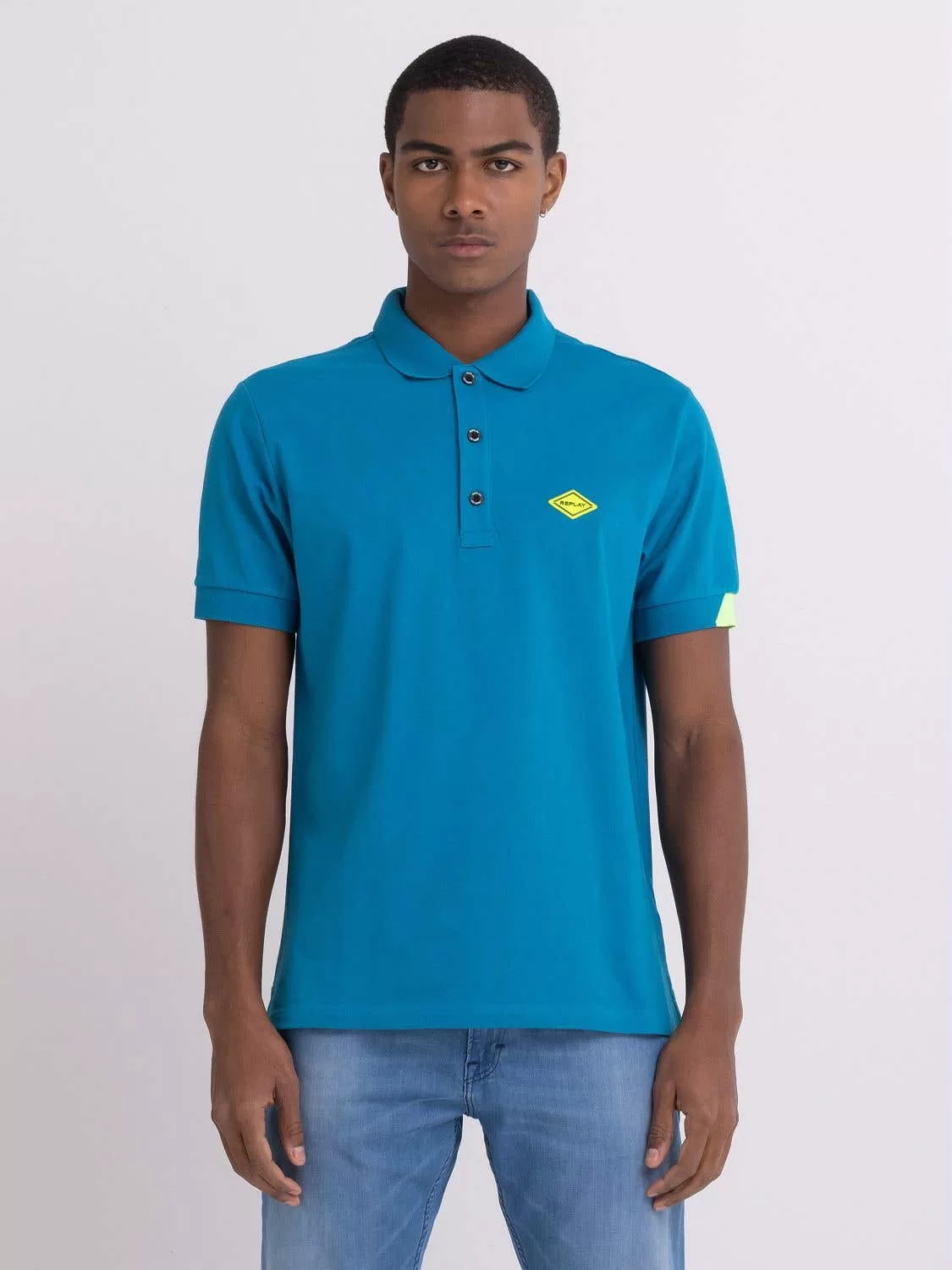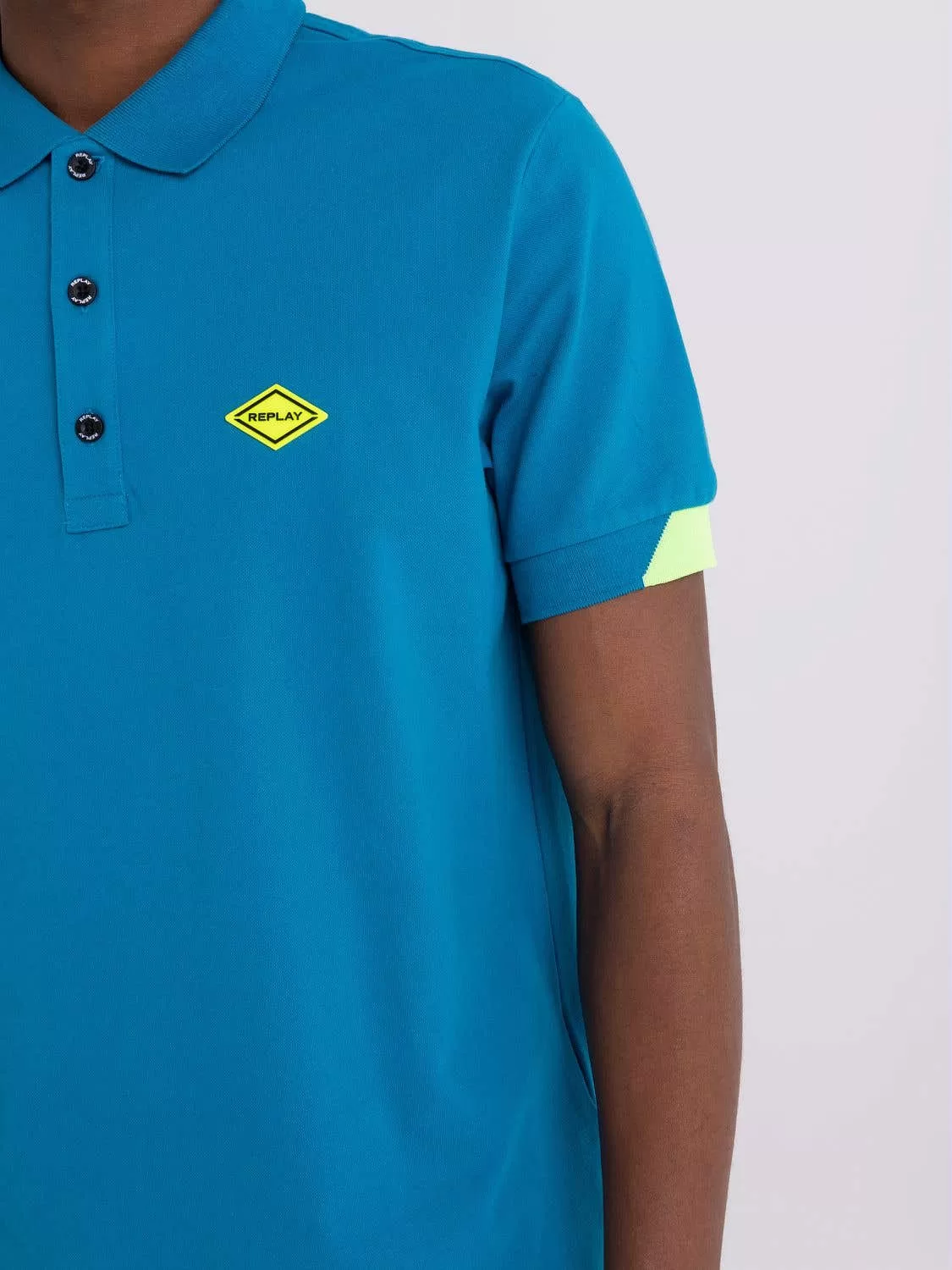 Polo de corte regular em algodão, manga curta. Estampados em cores contrastantes na gola e nos punhos no mesmo tom do em forma de diamante com logo. Botões personalizados. Composição: 95%ALGODÃO, 5%ELASTANO.