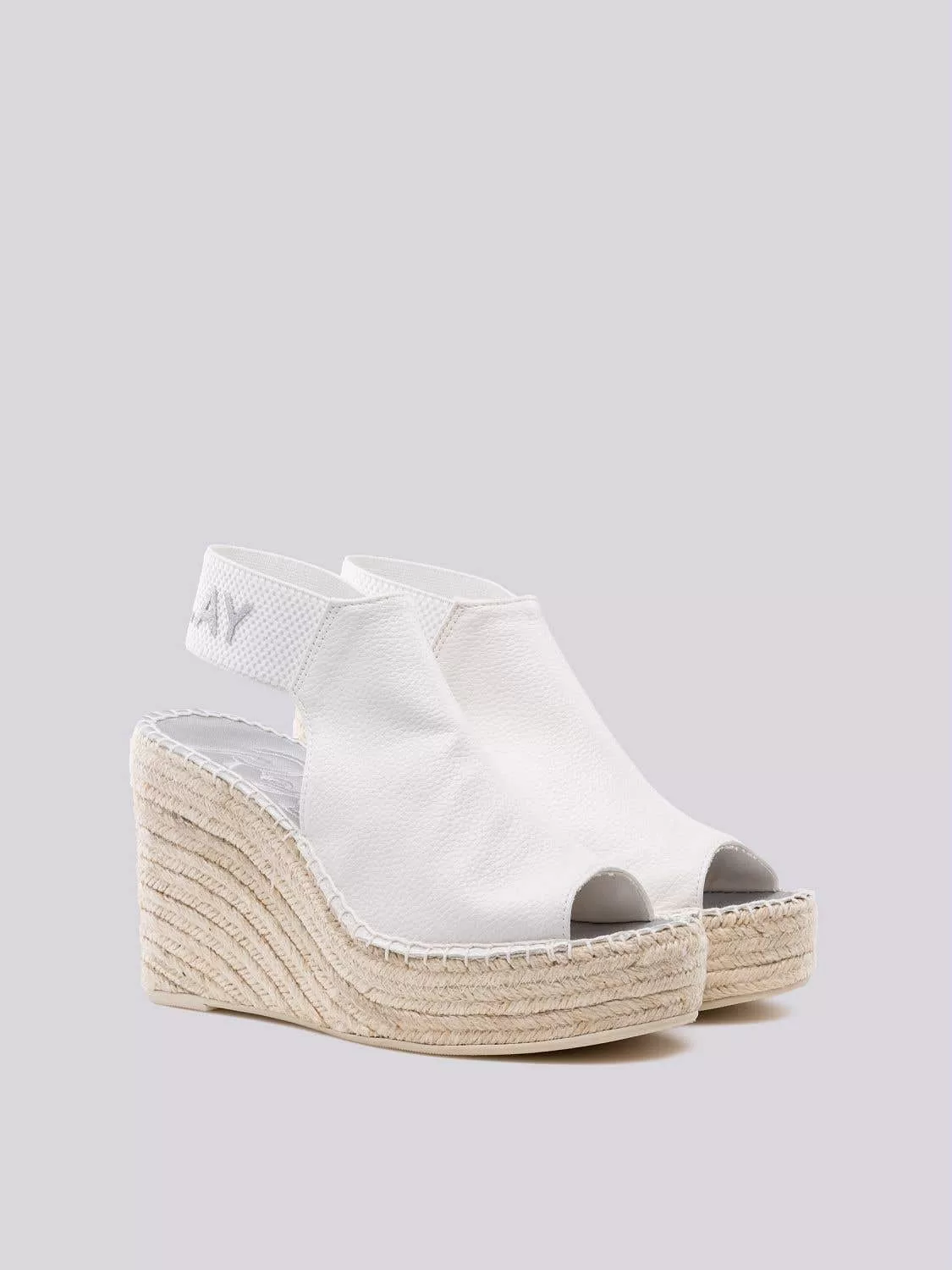 Sandália com fecho elástico no tornozelo com logotipo. Altura da cunha de 105 mm com plataforma de 35 mm. COMPOSIÇÃO: 100%SINT; 100%ELASTODIENO;