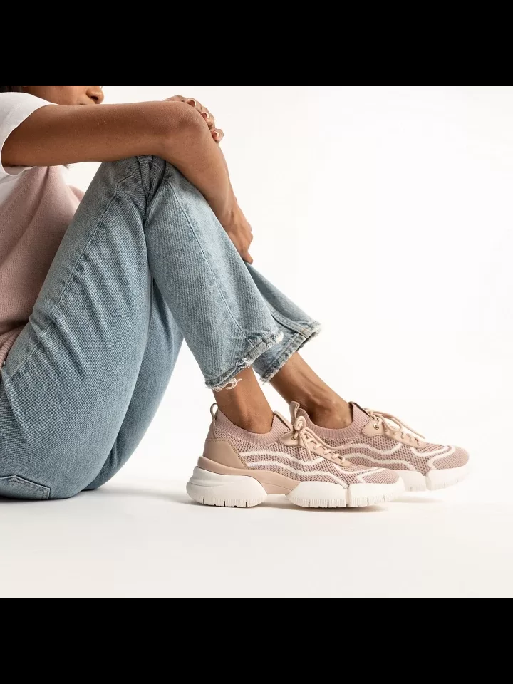 Sneaker mulher flexível e respirável, com um espírito desportivo e uma estética contemporânea. Aqui proposto numa cativante versão de cor de pele, com um atrativo active-chic, este modelo é feito de tecido efeito malha e napa. Com a sua sola amortecida, que garante uma excelente aderência mesmo em terrenos irregulares, Adacter mistura estilo e conforto e é perfeita para outfits casuais do dia a dia. CARACTERÍSTICAS Respirabilidade da sola e bem-estar do pé são assegurados pelos sistemas patenteados Geox. Amortecimento ideal que oferece proteção e absorção de impactos e solicitações. Calçado leve para um caminhar sempre confortável durante todo o dia. Calçado fácil de calçar para um conforto superior. Fácil e rápido de calçar. A palmilha extraível é higiénica e prática. Altura salto: 5 cm / 2″ COMPOSIÇÃO Parte superior: 75% Tecido-25% Pele Forro: 85% Tecido-15% Sintético Sola: 100% Material sintético Palmilha: 100% Tecido