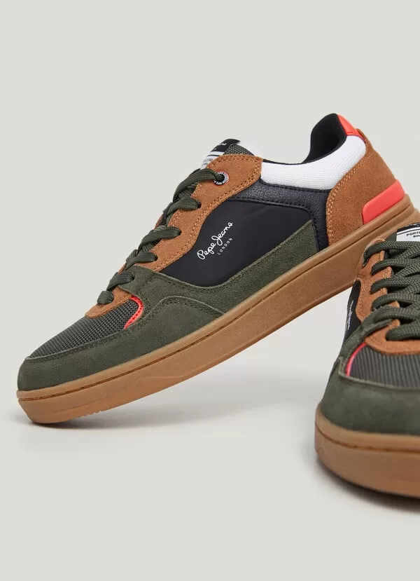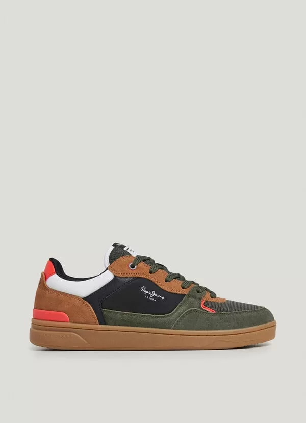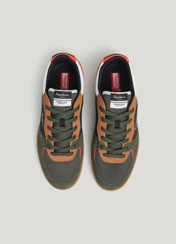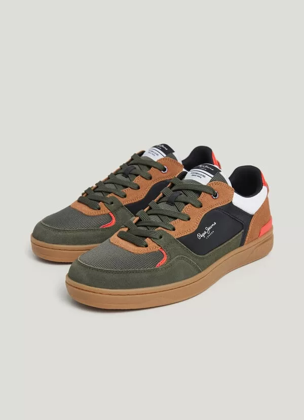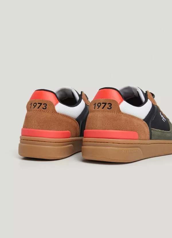 – Sapatilhas retro em camurça – Tecido de malha no peito do pé e laterais – Cores contrastantes – Com atacadores – Logo PEPEJEANS selado a quente na lateral – Palmilha termoformada e removível – Etiqueta com logo PEPEJEANS na língua – Detalhe de camurça no calcanhar com logo 1973 – Sola de borracha – Altura da sola: 3.5 cm