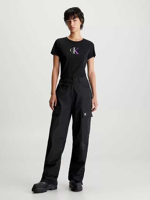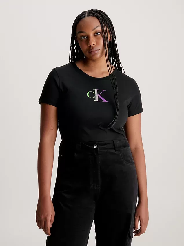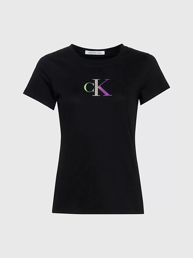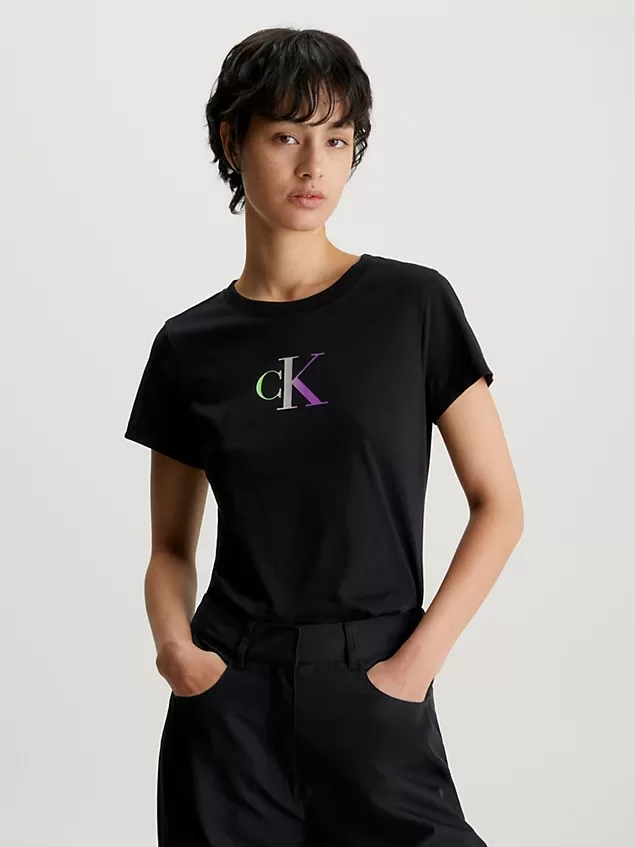 T-Shirt de algodão. Corte justo. Decote redondo. Manga curta. Logotipo gradiente da Calvin Klein no peito. Composição: 51% algodão orgânico; 49% algodão.