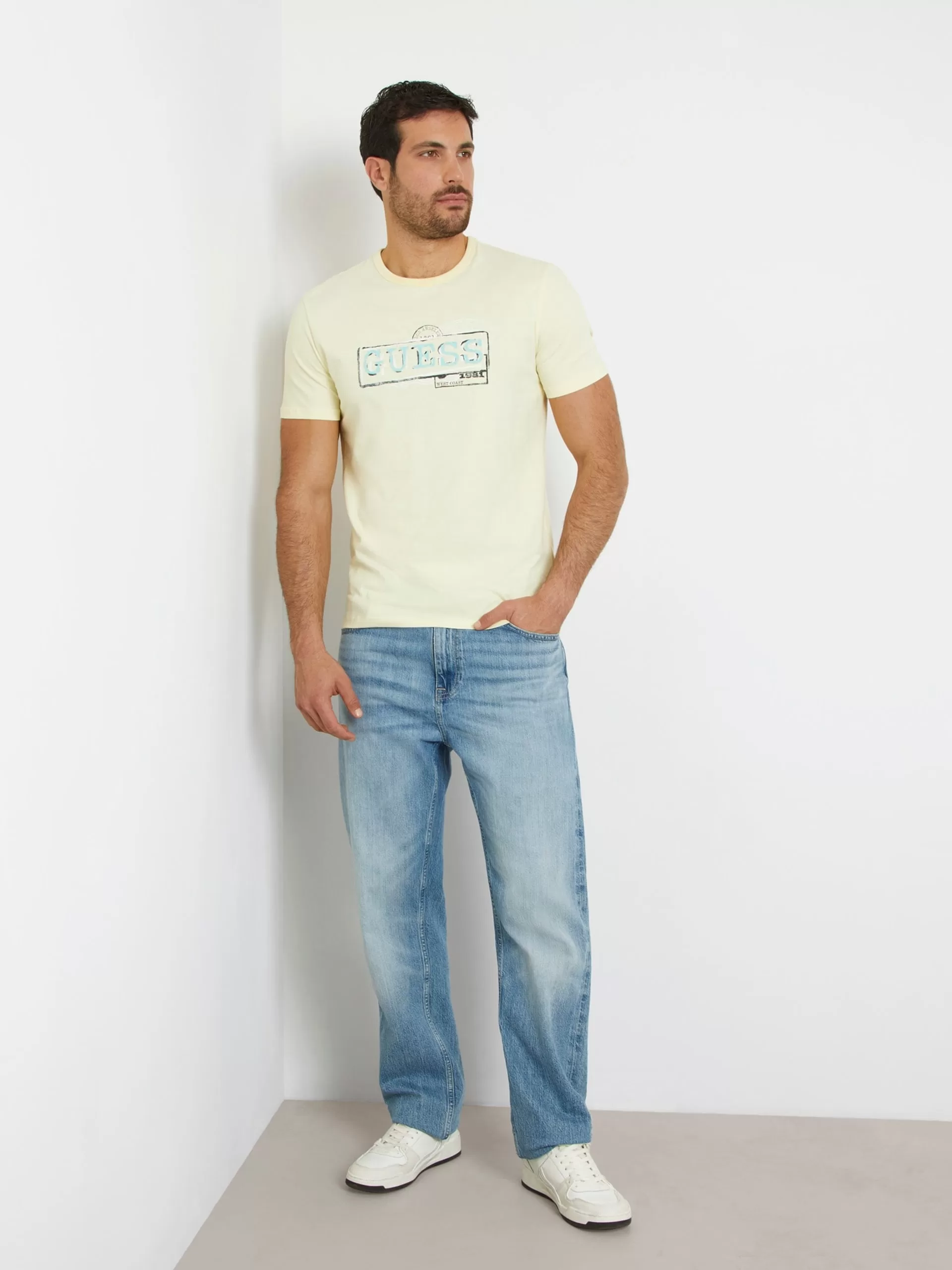 T-shirt em mistura de algodão. Decote redondo. Manga curta. Slim fit. TIPO DE TECIDO: Jersey. DETALHES DO TECIDO: Estampado logo à frente. Composição: REVESTIMENTO (tecido principal): 95% Algodão, 5% Spandex/Elastano.