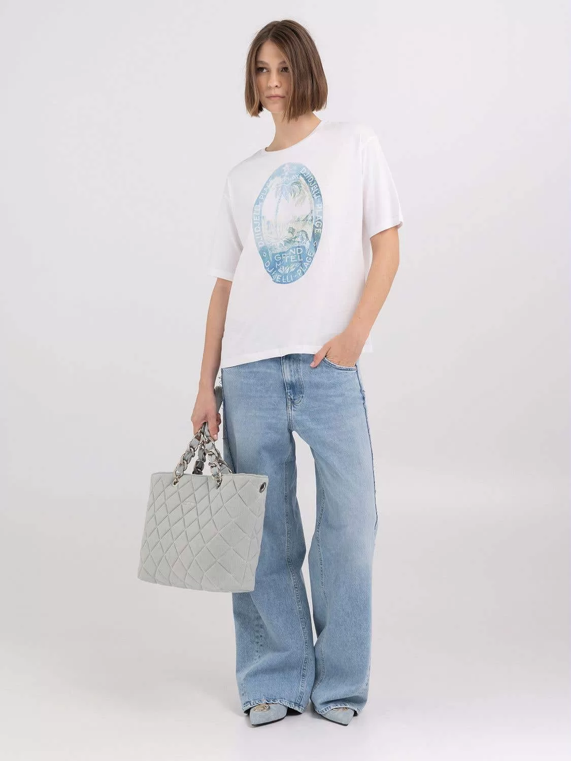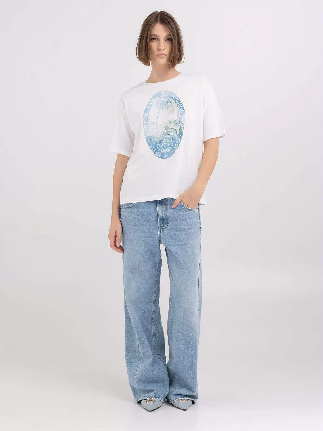 T-Shirt com gola redonda de algodão. Com corte boxy e cavas caídas. Estampa praia na frente e pela escrita personalizada estampada nas costas. COMPOSIÇÃO: 100% ALGODÃO.