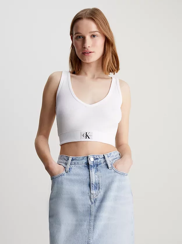Top elástico de algodão. Textura de costela fina. Corte justo, cortado. Decote em V baixo. Sem mangas. Emblema com monograma Calvin Klein na bainha. Composição: 56% algodão de transição 38% algodão 6% elastano.